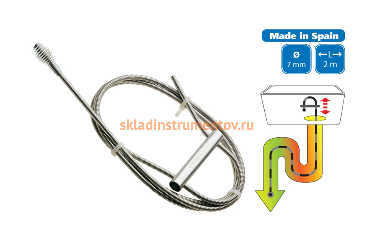 Ручная спиральная прочистка SUPER-EGO 5м 670050000 используется для прочистки умывальников, раковин, ванных и других стоков. Диаметр спирали: 7 мм. Длина: 5 м.