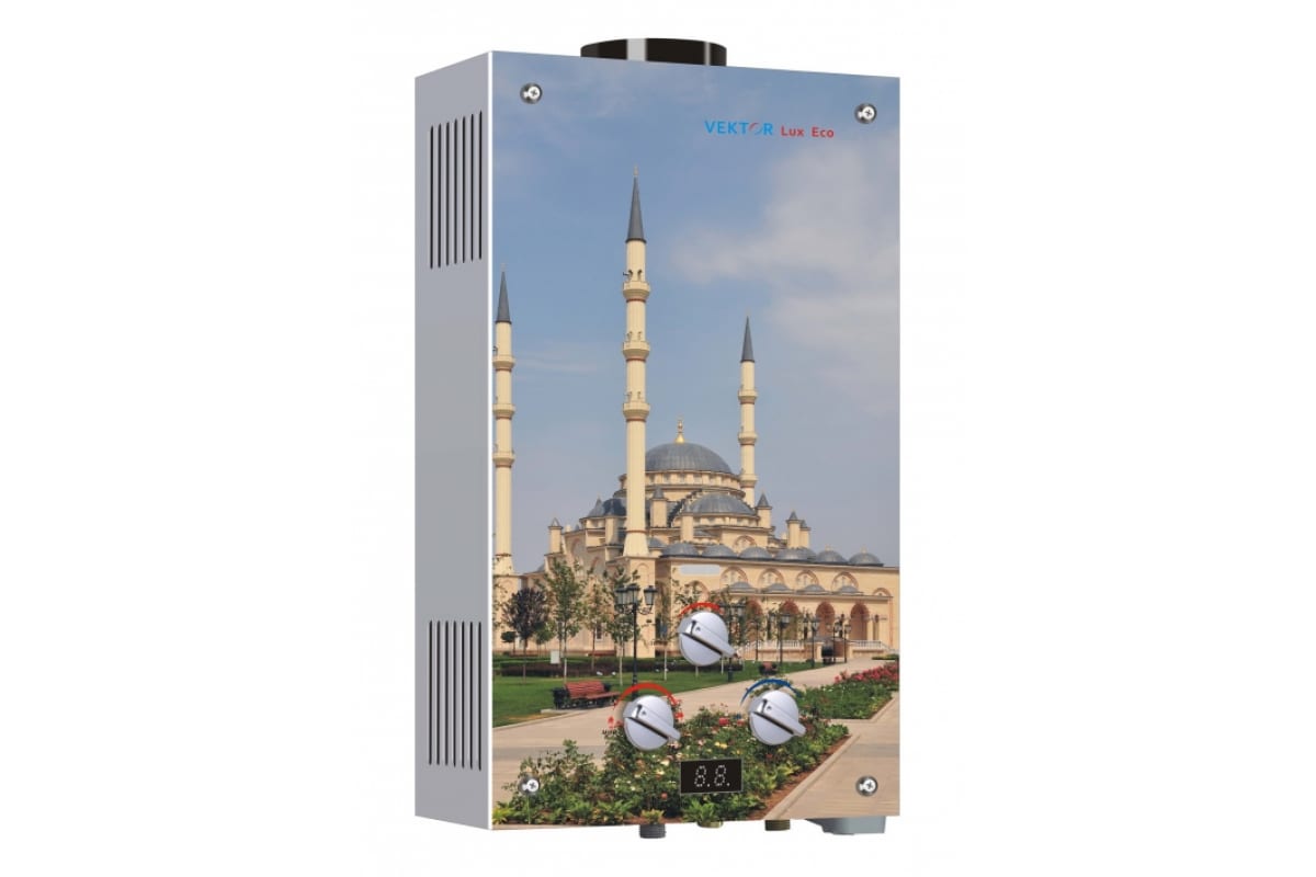 Газовая колонка Vektor LUX ECO 20-2 Мечеть - надежный агрегат, предназначенный для приготовления горячей воды. Его можно установить в квартире или на даче. Теплообменник со специальным покрытием, обеспечивающим дополнительную защиту от окисления, значительно продлевает срок службы агрегата. Данная модель имеет оригинальное дизайнерское решение облицовки. Электронное управление обеспечивает максимально комфортную эксплуатацию. В колонке установлен датчик температуры воды с цифровым светодиодным индикатором. Отсутствие постоянно горящего запальника делает работу агрегата безопасной.