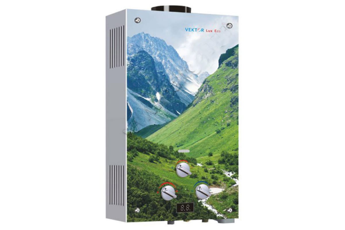 Газовая колонка Vektor LUX ECO 20-2 Горы Лето стабильно работает даже при низком давлении подводимой воды в 0.2 Бар. Данная модель оборудована камерой сгорания с водяным охлаждением для безопасной работы агрегата в жилых помещениях. Теплообменник со специальным покрытием, обеспечивающим дополнительную защиту от окисления, продлевает срок службы агрегата. В колонке установлен датчик температуры воды с цифровым светодиодным индикатором. Наличие цифрового дисплея позволяет контролировать температуру нагрева воды.