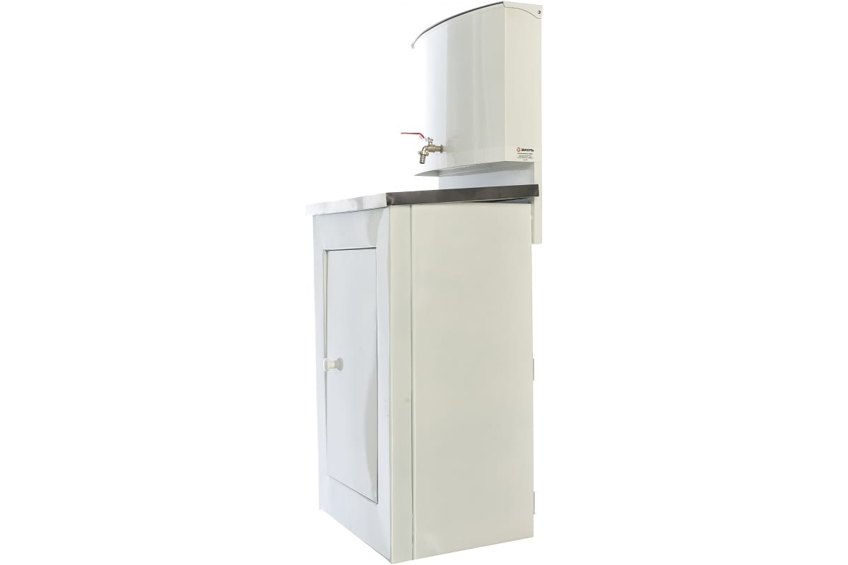 Дачный умывальник без подогрева Вихрь, белый 74/4/5 гармонично впишется в любой интерьер. Имеет металлический бак, покрытый порошковой краской для устойчивость к коррозии. Мойка сделана из нержавейки.