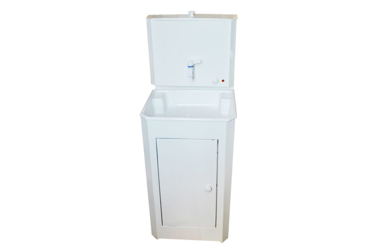 Для удобства пользователя умывальник оснащен тумбой, в которую можно поставить ведро или шланг для слива воды.