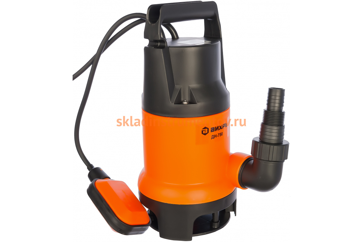 Дренажный насос Вихрь ДН-750 используется для откачивания вод из подтопленных помещений или в качестве силового агрегата в системах орошения. Насос оснащен производительным двигателем 750 Вт, в котором предусмотрен датчик для защиты от перегрева. Устройство автоматически включается и выключается при критическом уровне воды, благодаря поплавковому механизму.