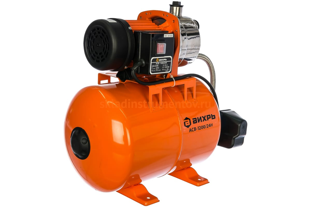 Автоматическая станция водоснабжения Вихрь АСВ-1200/24Н - аппарат, который можно использовать на садовом участке или даче для подвода воды. За счет гидробака не требуется постоянно включать и выключать насос. Гидроаккумулятор рассчитан на 24 л жидкости. Корпус агрегата выполнен из нержавеющей стали. Способен передавать жидкость на расстояние до 40 м при производительности 70 л/мин.