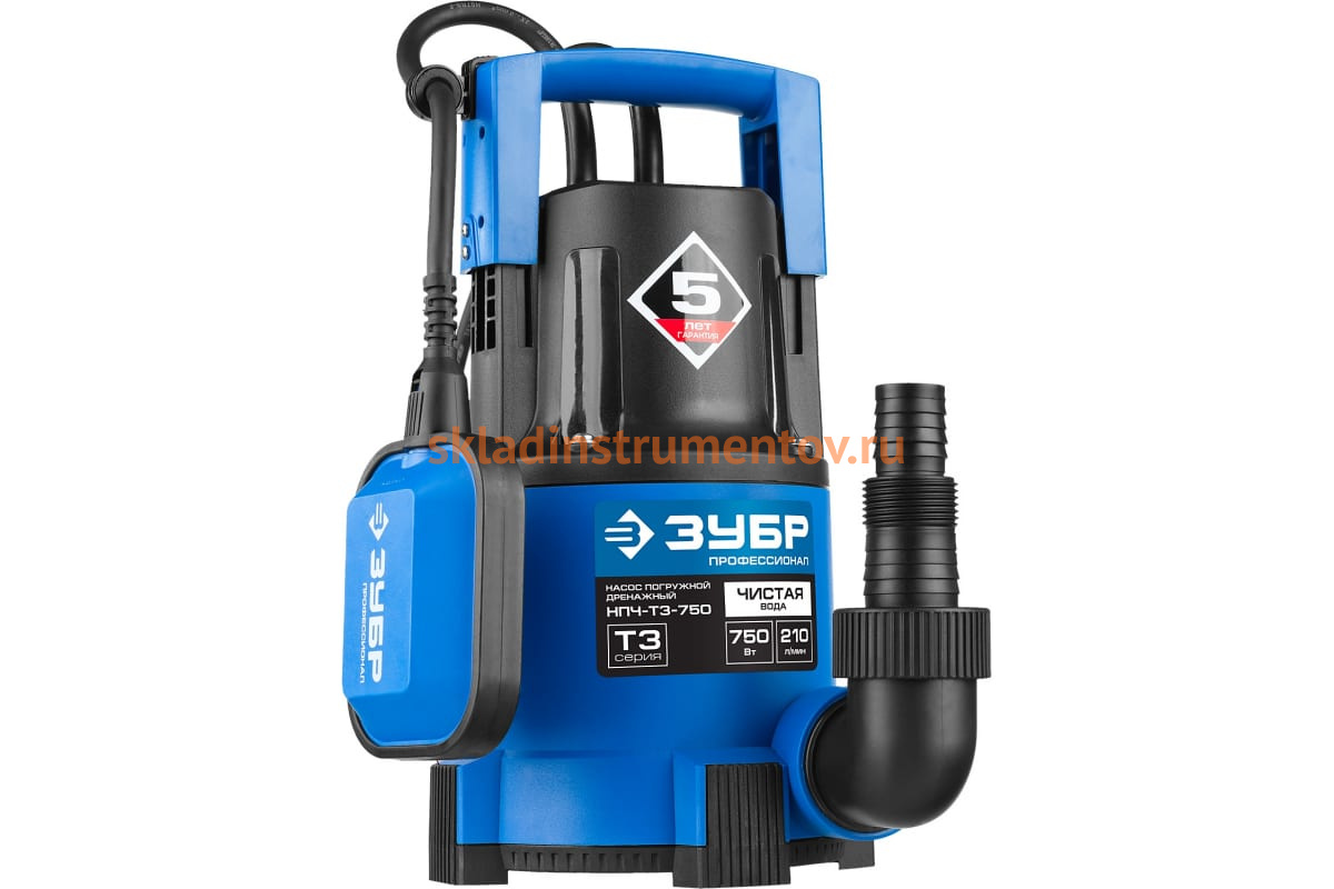 Погружной дренажный насос для чистой воды ЗУБР ПРОФЕССИОНАЛ НПЧ-Т3-750 предназначен для перекачивания воды на садовых участках.