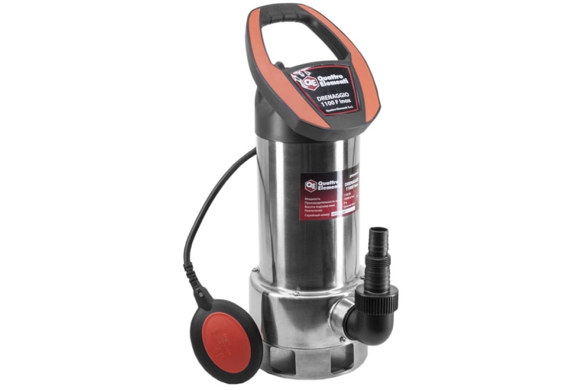Дренажный насос QUATTRO ELEMENTI Drenaggio 1100 F Inox 770-742 - агрегат для перекачивания воды с примесями размером до 35 мм. В конструкции предусмотрена эргономичная рукоятка для удобства переноски насоса. Модель отличается высокой пропускной способностью благодаря мощному электродвигателю. Для подсоединения шланга служит универсальный штуцер. Поплавковый выключатель обеспечивает защиту от сухого хода. Это исключает поломку и повышает срок службы насоса.