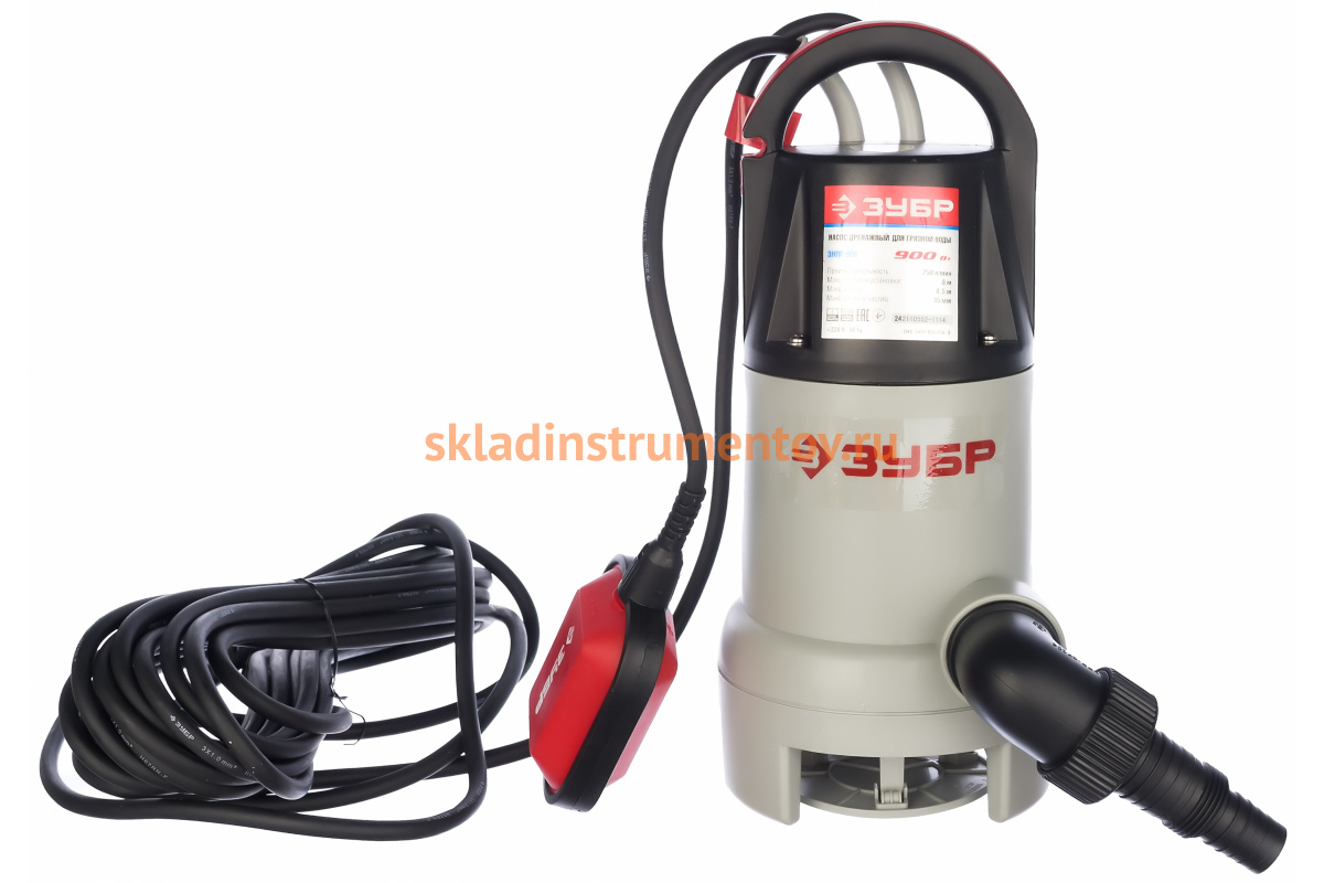 Погружной дренажный насос ЗУБР ЗНПГ-900 предназначен для забора грязной воды с размером частиц примеси до 3.5 см. Эта модель перекачивает 230 литров в минуту. Используется для осушения небольших прудов и водоёмов, в системах дренажа (отвода воды) и аэрации (насыщения кислородом) почв, для полива.