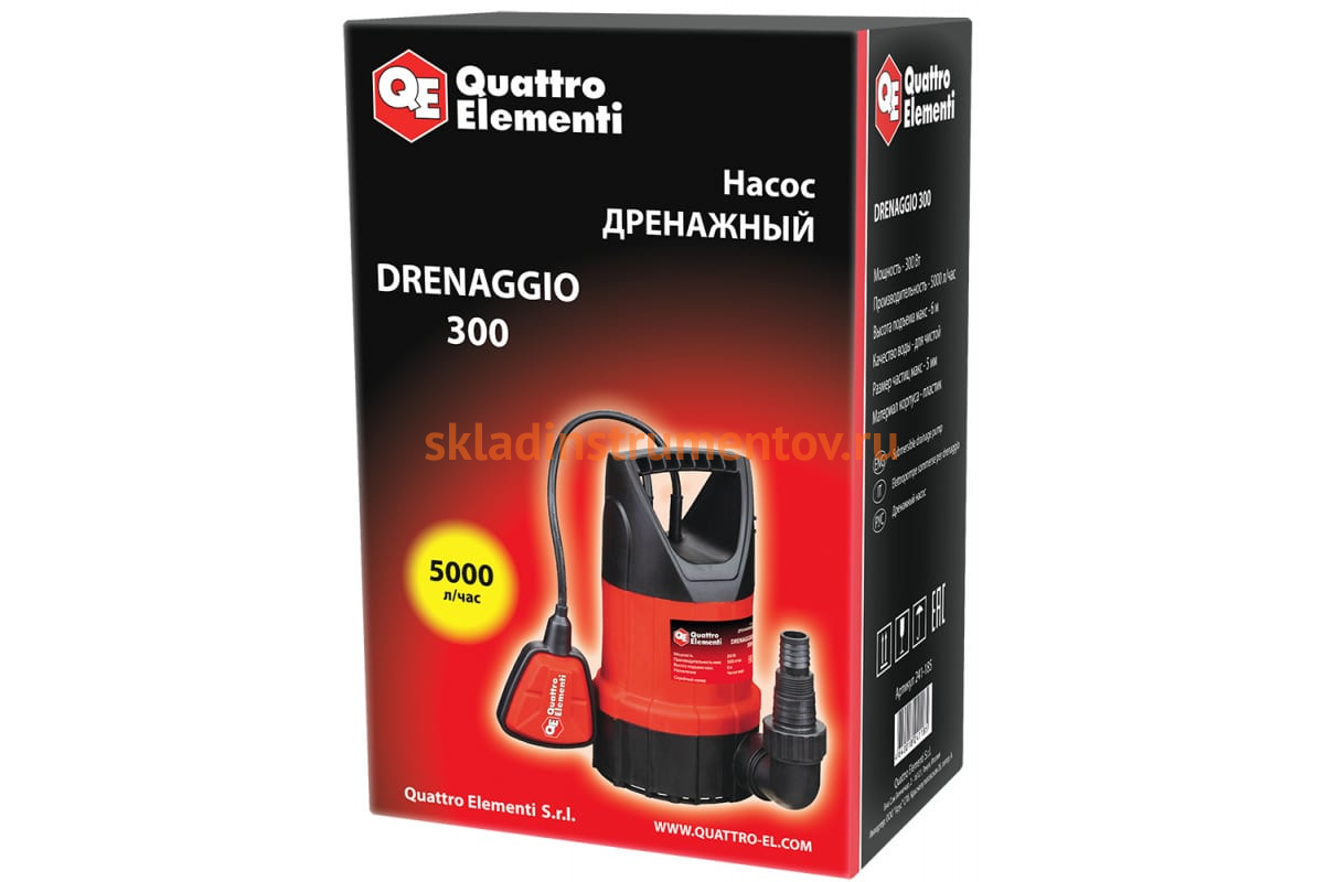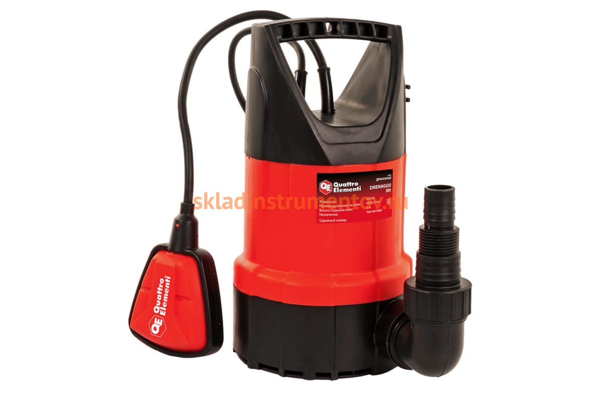 Дренажный насос QUATTRO ELEMENTI Drenaggio 300 241-185 - аппарат для откачивания чистой воды из колодцев. Корпус изготовлен из пластика, поэтому насос имеет небольшой вес. Работает в автоматической режиме. Защищен от работы всухую и отличается долгим сроком службы.