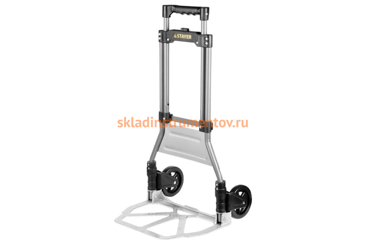 Хозяйственная раскладная тележка STAYER EXPERT максимальная нагрузка 90кг 38755-90 обладает жесткой рамной конструкцией, выполненной из стали. Два колеса большого диаметра способствуют легкой транспортировке груза без значительных усилий оператора. Рукоятка тележки регулируется по высоте и имеет широкую поверхность хвата (при этом повторяет форму пальцев). Встроенный механизм быстро складывает и раскладывает основание тележки. Оборудование исключительно просто в использовании - им может пользоваться как профессионал, так и любитель.