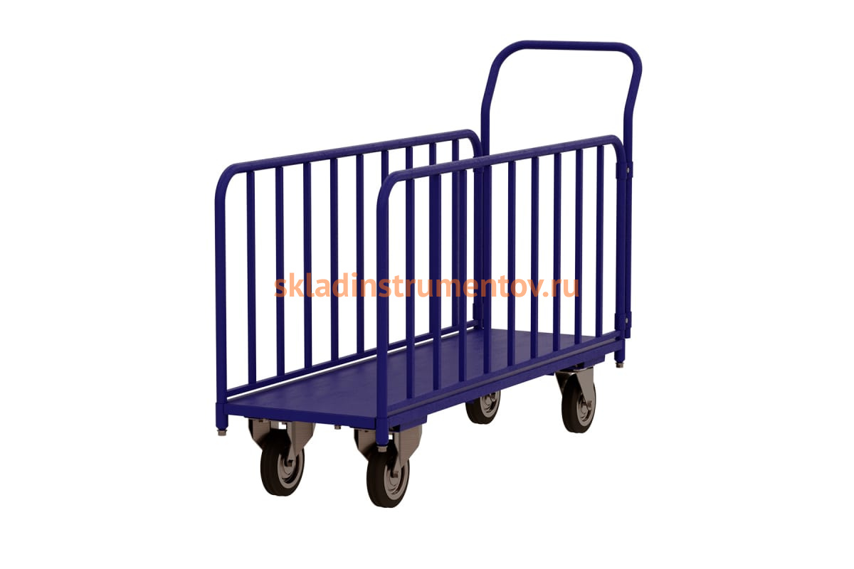 Тележка для перевозки длинномерных грузов RUSKLAD ДЛ 200 (450х1300) изготовлена из прочного материала и оснащена трубчатыми бортами, которые позволяют удерживать груз на платформе. Тележка представляет собой приспособление вытянутой формы, позволяющей перевозить длинномерные грузы по узким проходам.