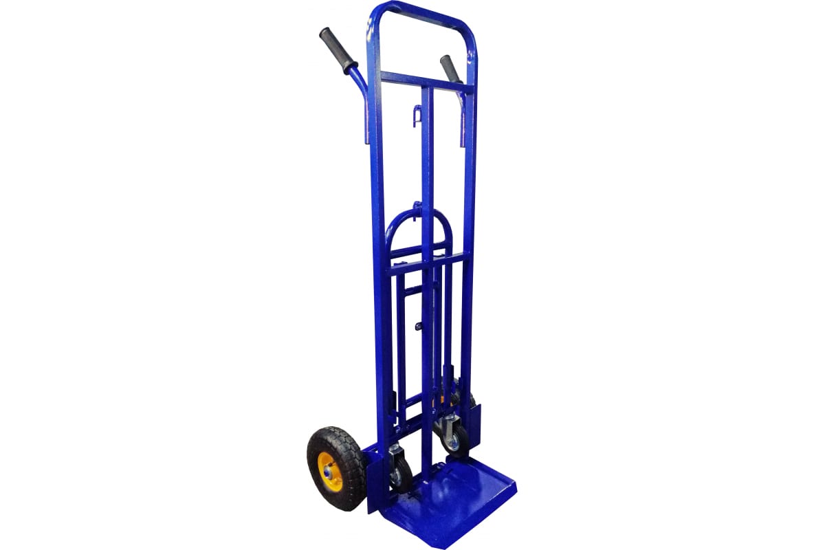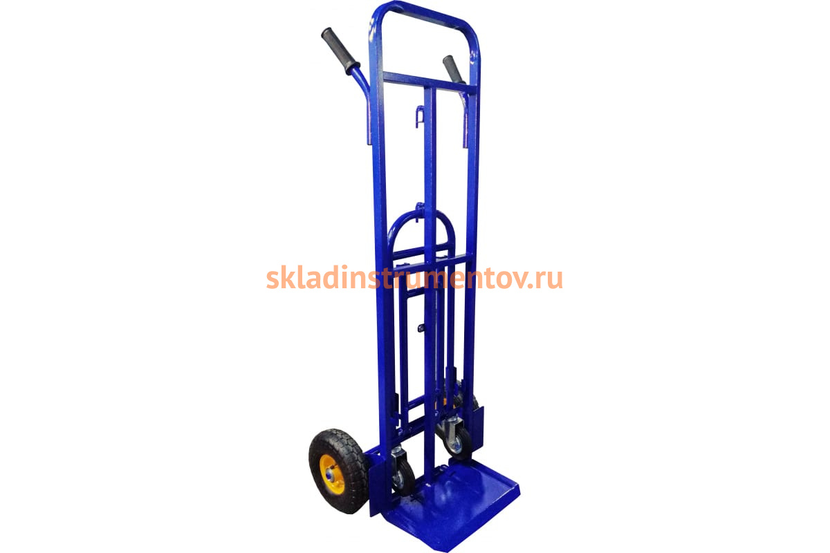 Прочная конструкция с каркасом из труб и двумя пневматическими колесами диаметром 250 мм и дополнительными опорными колесами Ø 125 мм, окрашена полимерной порошковой краской, что позволяет использовать приспособление на открытом воздухе даже при неблагоприятных погодных условиях. Тележка широко распространена для эксплуатации в профессиональной сфере - на складах, производственных предприятиях и т. д.