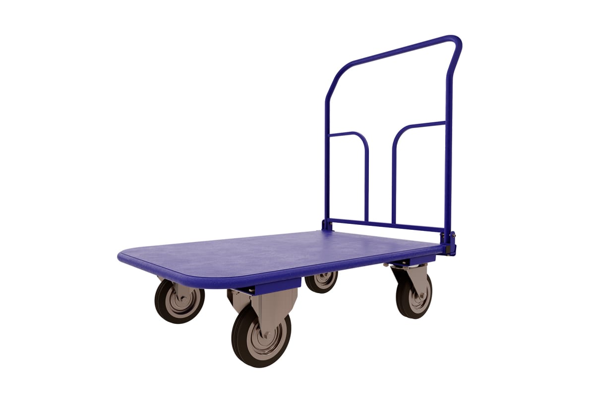 Тележка обладает вместительной платформой из листа металла и четырьмя колесами диаметром 125 мм. Отсутствие бортиков позволяет транспортировать неформатные грузы. Для защиты корпуса от образования коррозии предусматривается качественное современное полимерное покрытие порошкового типа.