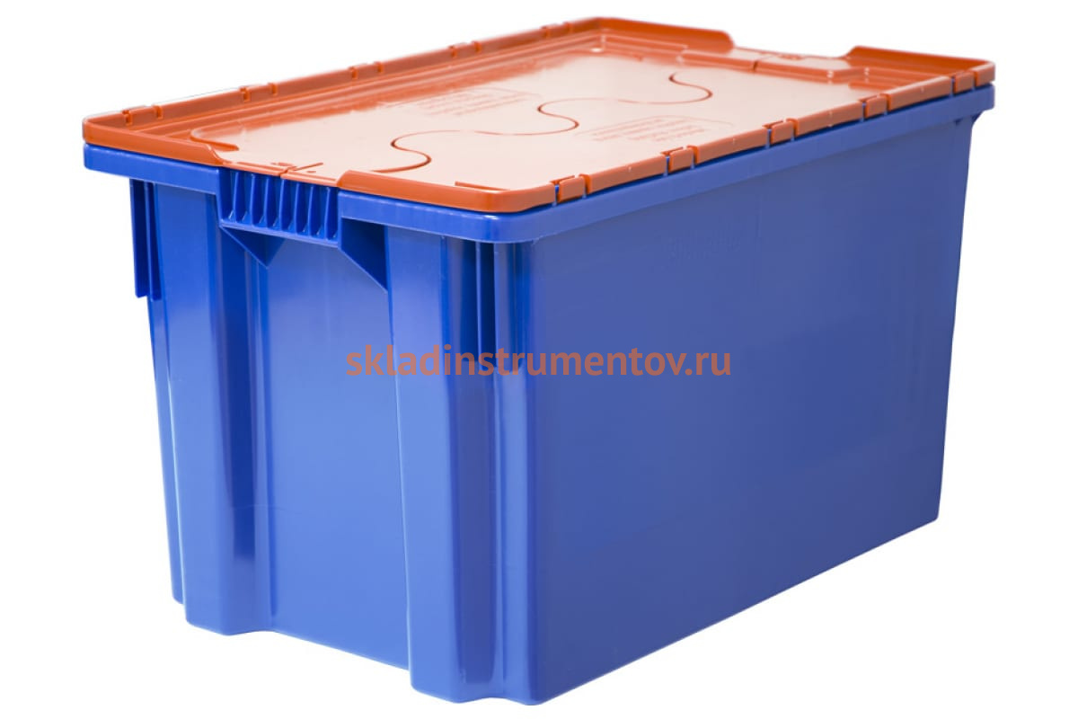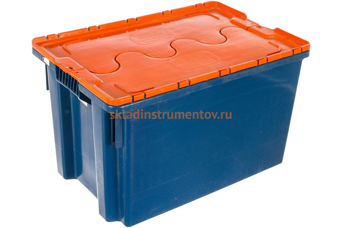 Ящик п/э 600х400х350, сплошной, синий с оранжевой крышкой Тара.ру 18661 обладает контрастным набором цветов для большей заметности.