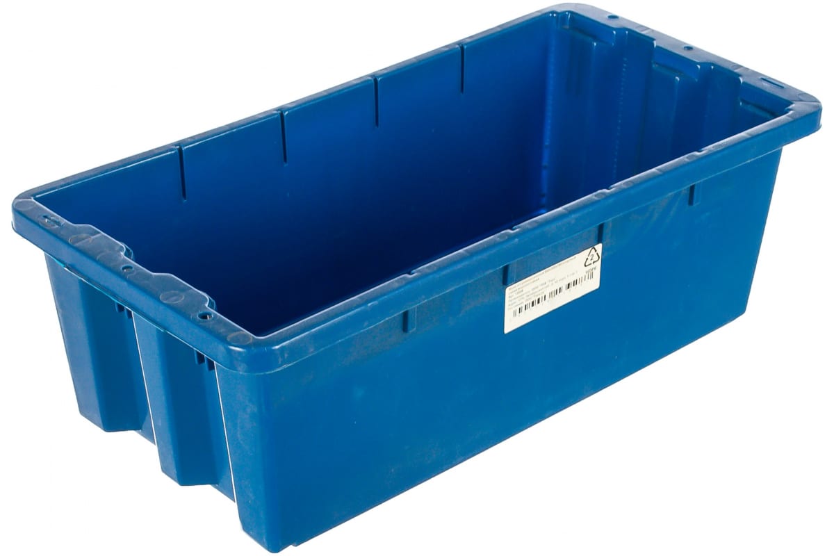 Универсальный ящик п/э 600х300х190 конусный синий морозостойкий Тара.ру 13928 подходит для хранения различных вещей. Снаружи расположены ребра жесткости, которые увеличивают прочность ящика.