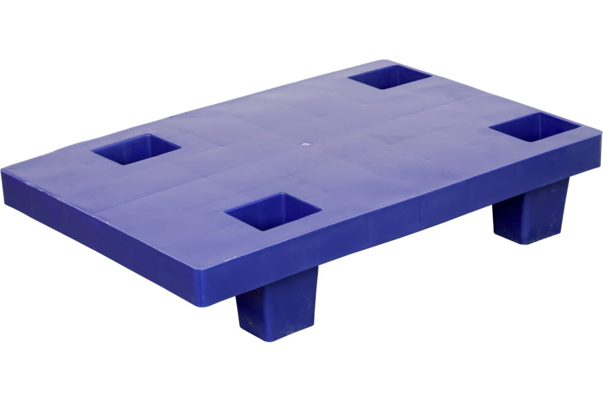 Сплошной паллет на ножках, синий, 600х400х130 мм ТАРА 15753 служит для размещения продуктов на складах или в производственных помещениях.