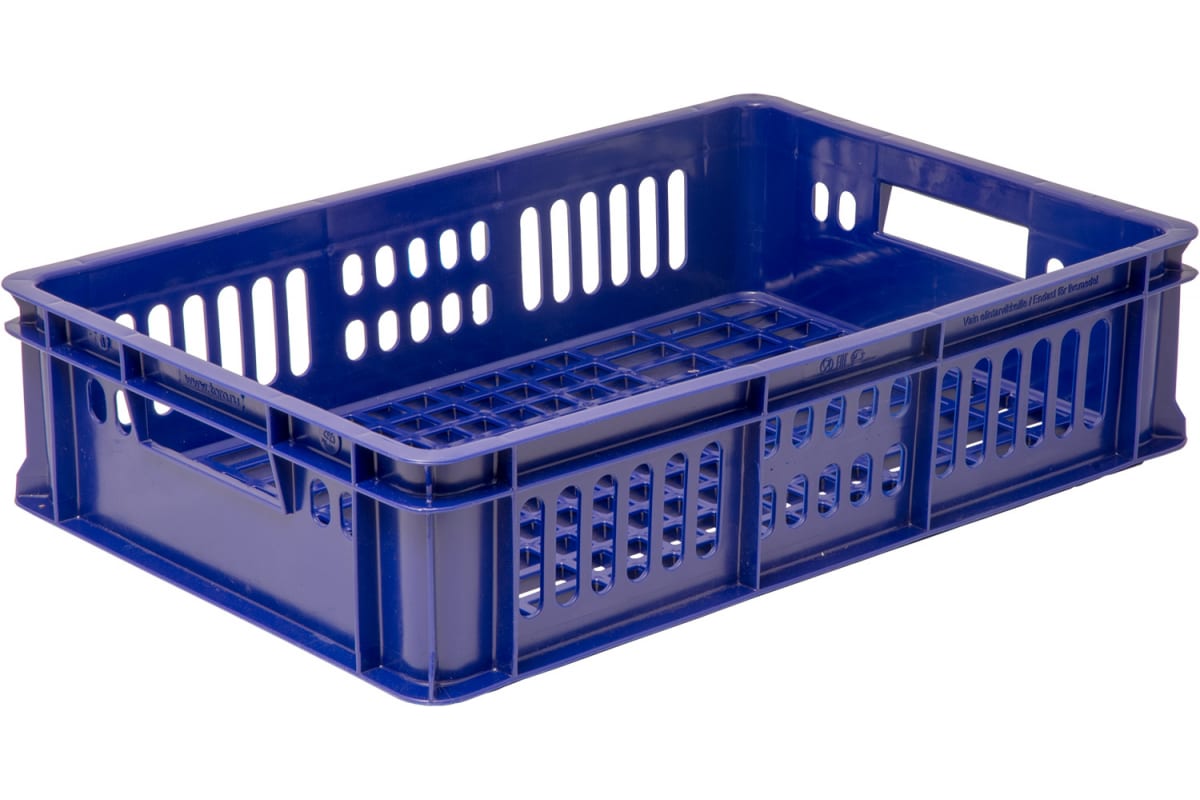 Хлебный ящик п/э 600х400х150 с перфорацией синий Тара.ру 15657 обладает небольшими размерами и весом. За счет дополнительных ребер жесткости увеличена прочность и грузоподъемность.