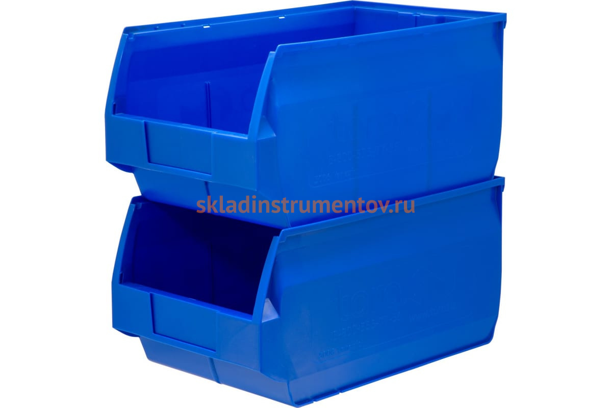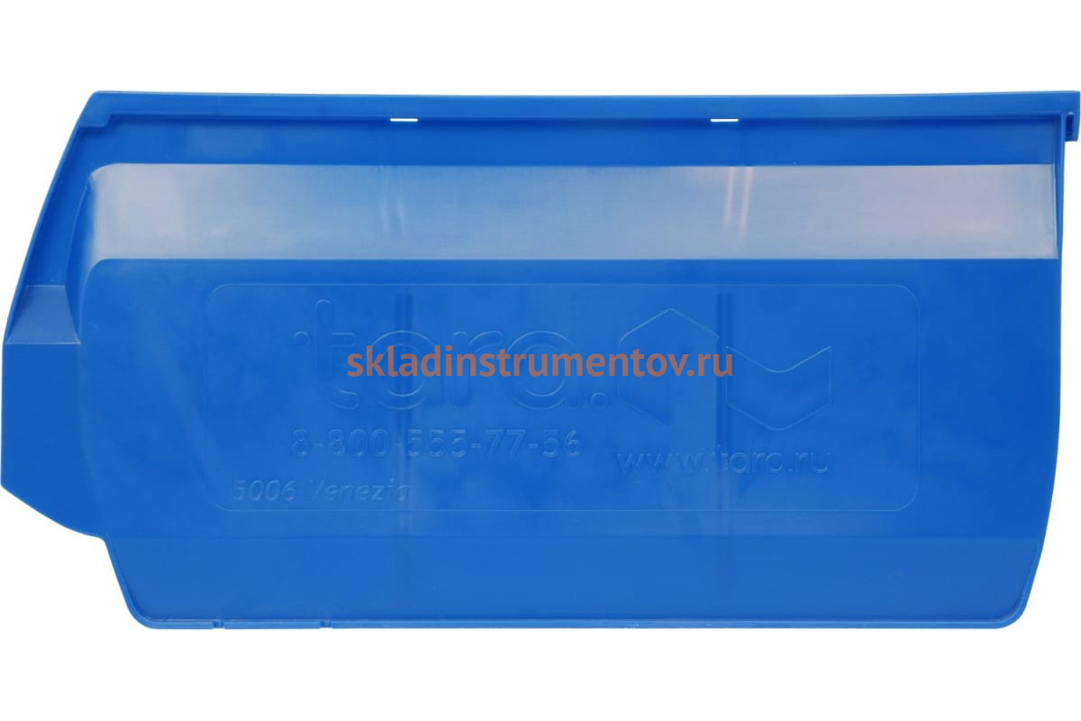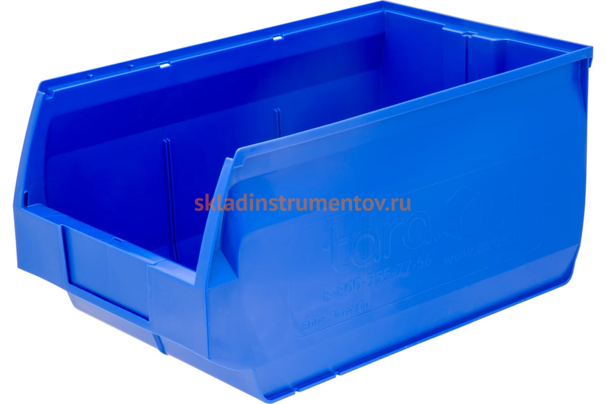 Ящик Тара.ру Venezia 500х310х250 мм, синий 10043 ширико распространен в мастерских, магазинах и на складах. Обладает гладким дном и оснащен зацепом для размещения на стеллажах.