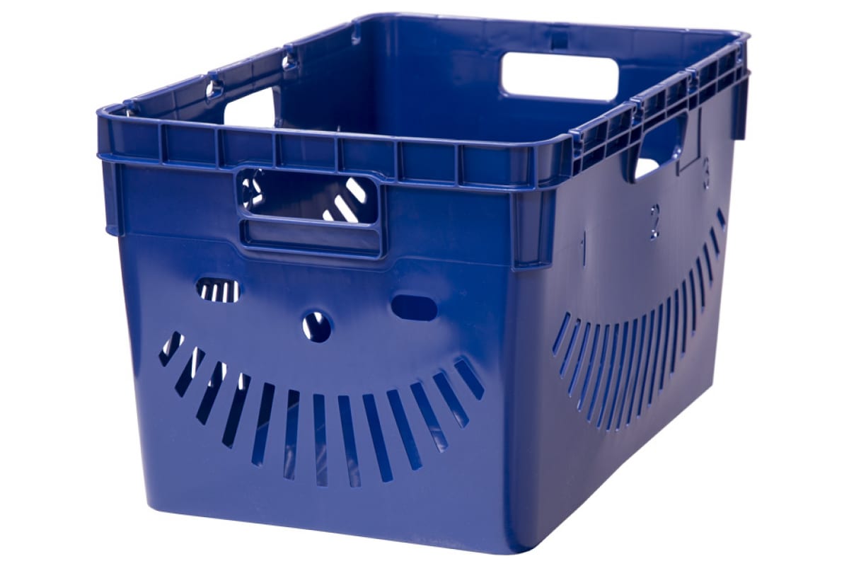 Ящик Тара.ру п/э, 600x400x340 перфорированный, стенки с отверстиями для пакетов, синий 10835 отлично подходит для хранения и транспортировки пищевых продуктов. Корпус изготовлен из прочного материала, который устойчив к деформации. Это обеспечивает надежную эксплуатацию и долгий срок службы ящика. Перфорированные стенки обеспечивают свободную циркуляцию воздуха, что препятствует образованию влаги.