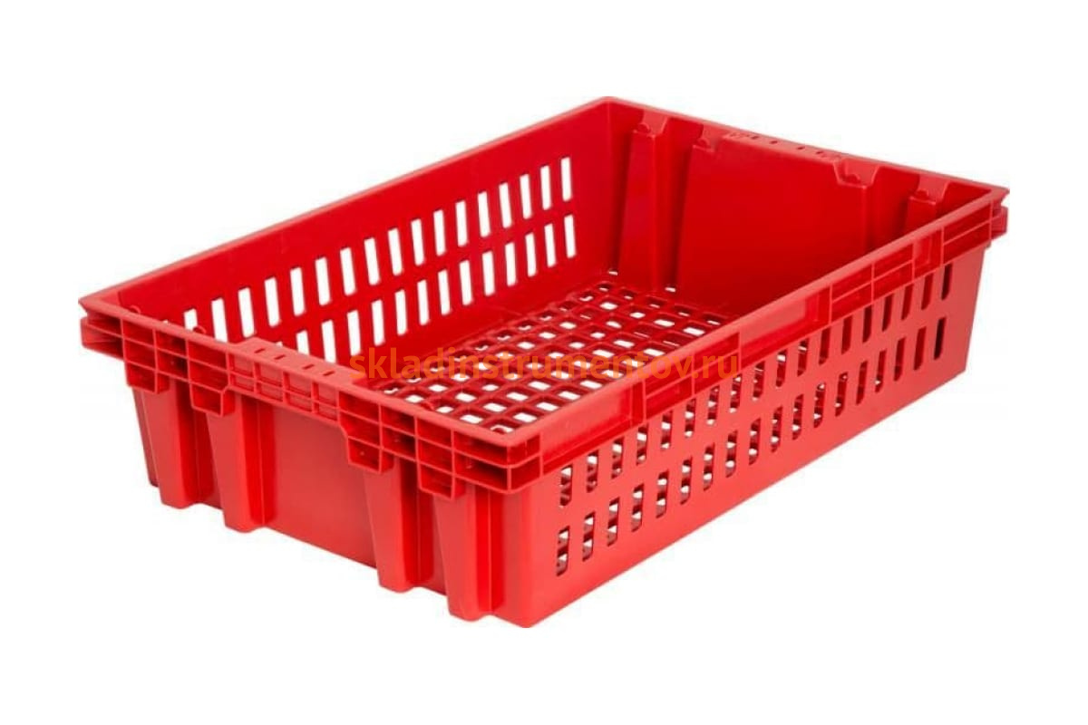 Хлебный ящик, 600x400x152.5, красный вес 1.2 кг Тара.ру 01466 - легкий перфорированный лоток для хранения и транспортировки хлебо-булочных изделий. Предусмотрены ручки для удобного перемещения ящика.