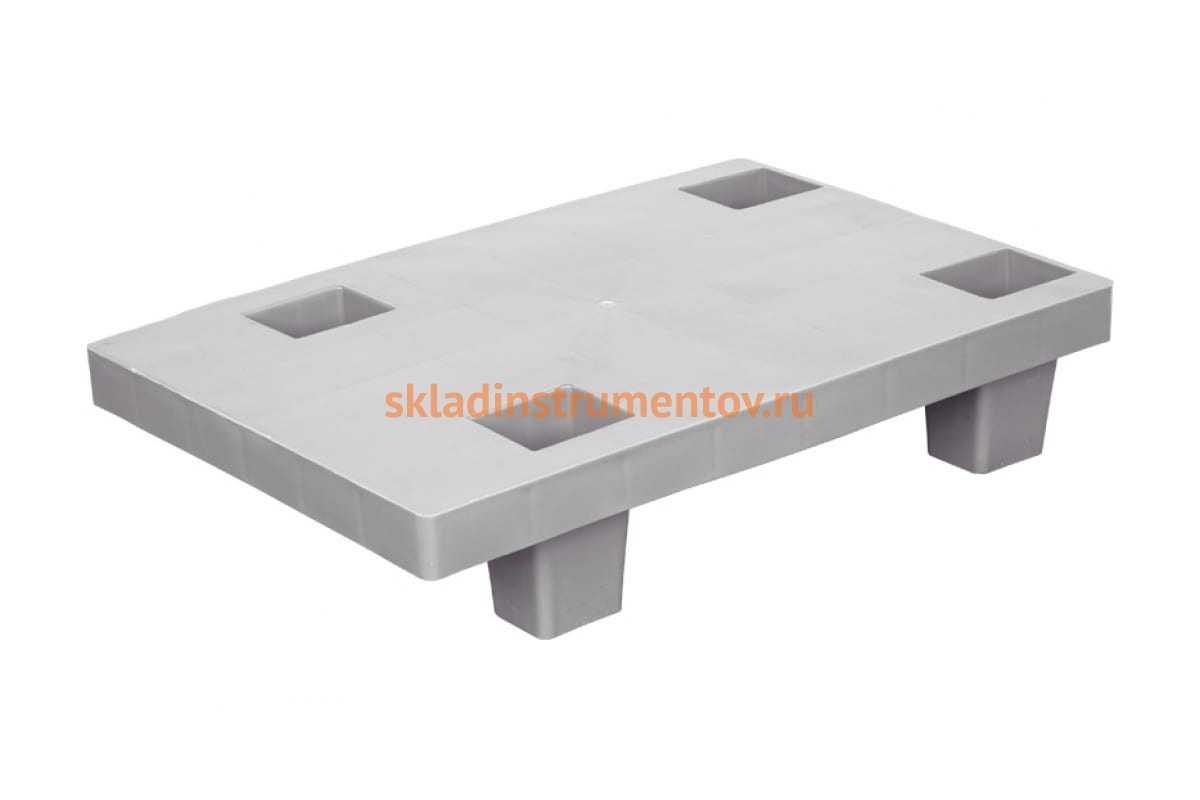 Сплошной паллет на ножках, серый, 600х400х130 мм Тара.ру 16318 служит для размещения продуктов на складах или в производственных помещениях.