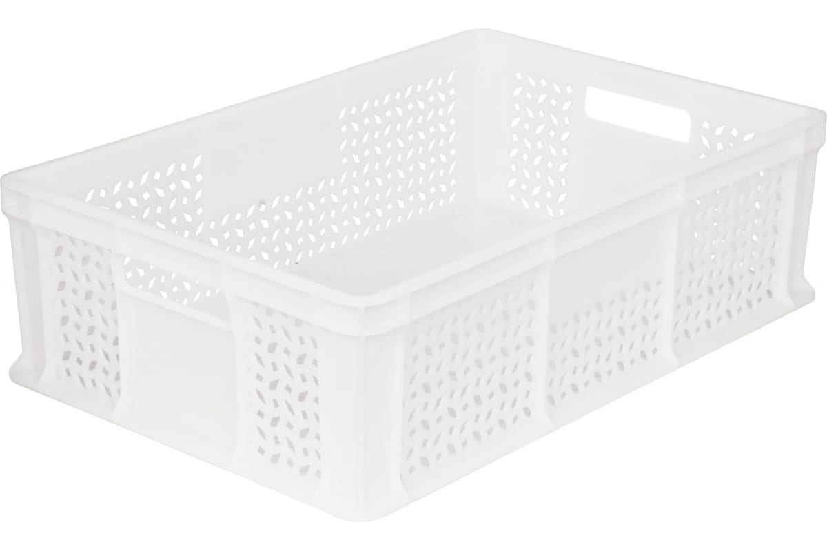Морозостойкий перфорированный ящик с ручками Тара.ру 600х400х180 мм, белый 16413 применяется для хранения ягод, овощей и фруктов. Используется в морозильных камерах. Материал изготовления не вступает в контакт с продукцией и не выделяет токсичных веществ. Для удобной транспортировки ящика предусмотрены ручки.
