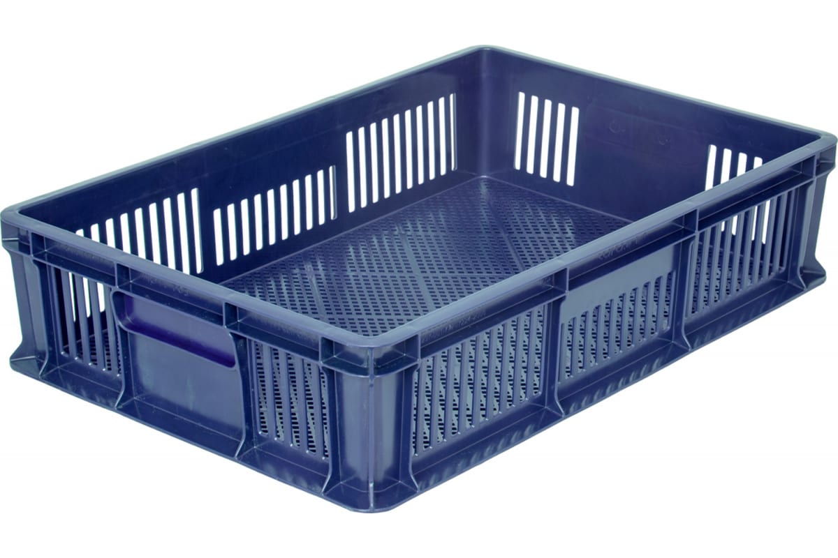 Перфорированный ящик ТАРА 600х400х140 мм, синий 17196 идеально подходит для хранения товаров пищевой промышленности.