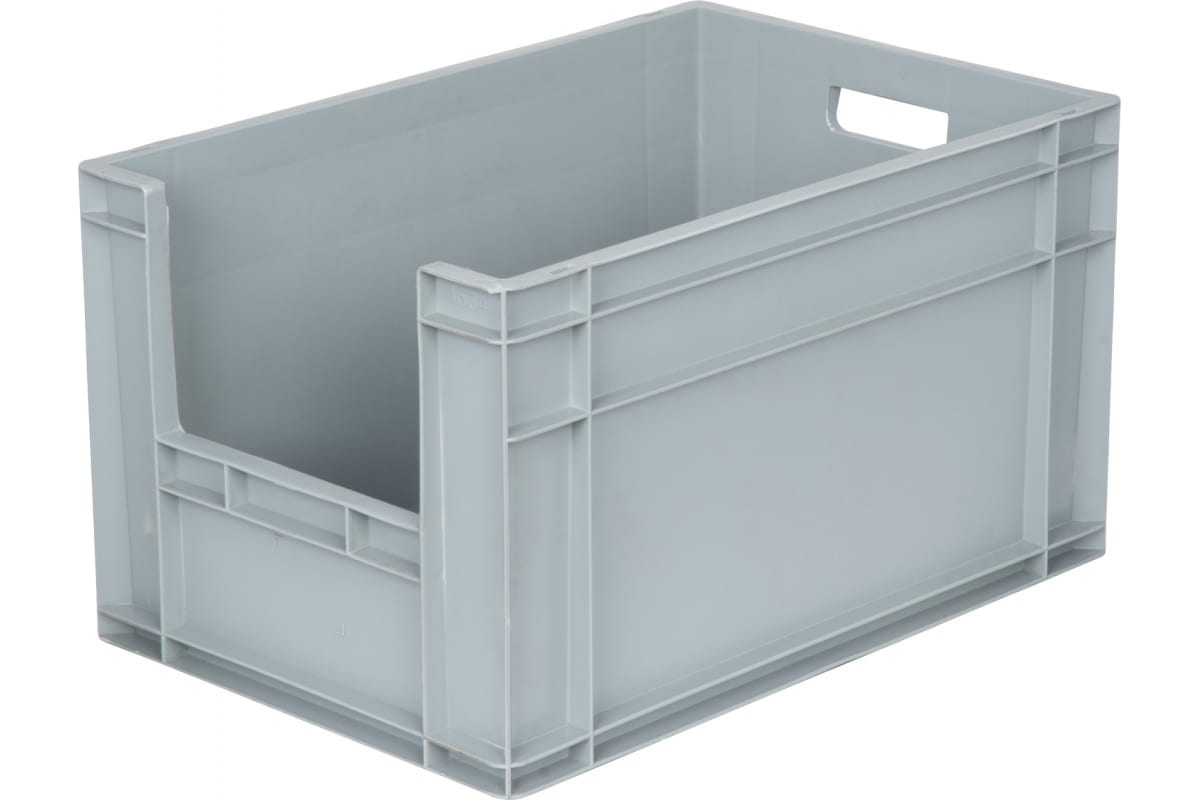Ящик Тара.ру п/п, 600х400х340, с вырезом, с ручками, дно с усилением, серый B-4634 подходит для хранения любых предметов: от бытовых вещей и продуктов питания до промышленных компонентов. Изделие выполнено высокопрочного полипропилена - материала, устойчивого к перепадам температуры. Дополнительные ребра жесткости позволяют максимально заполнить ящик без деформации.