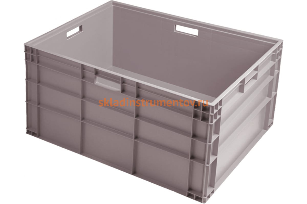 Ящик Тара.ру п/п, 800х600х455, сплошной, с ручками, дно с усилением, серый B-8644 подходит для хранения любых предметов: от бытовых вещей и продуктов питания до промышленных компонентов. Изделие выполнено высокопрочного полипропилена - материала, устойчивого к перепадам температуры. Дополнительные ребра жесткости позволяют максимально заполнить ящик без деформации.