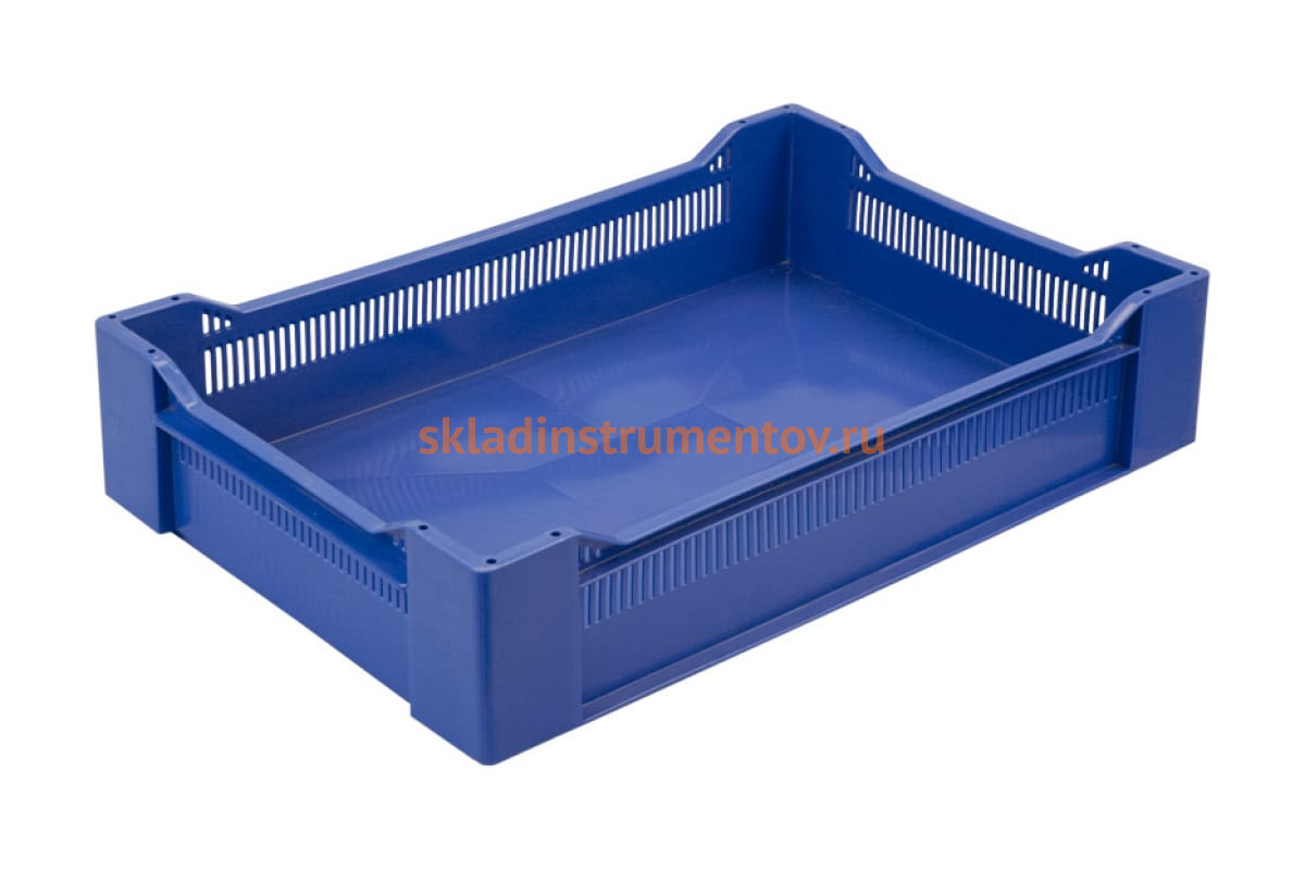 Ягодный ящик п/э 600х400х135 сплошное дно синий Тара.ру 02365 можно использовать для хранения, выставления на прилавок или транспортировки ягод.