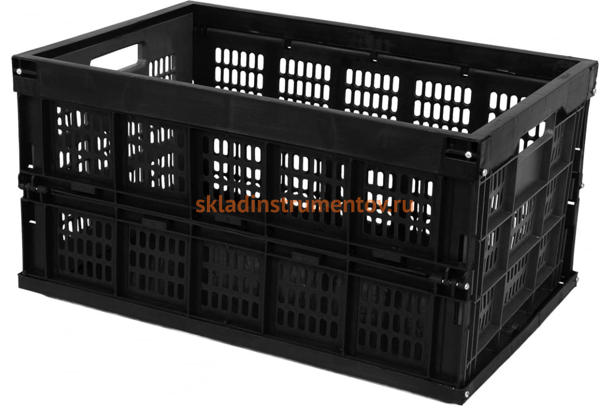 Складной перфорированный чёрный ящик Тара.ру п/э 530x350x272 23488 позволяет хранить и перевозить продукты питания, а также непродовольственные товары.