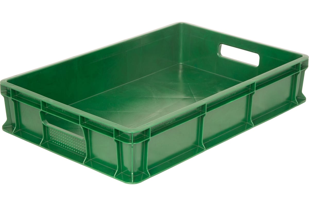Ящик Тара.ру п/э 600х400х120 сплошной, с ручками, зелёный 16679 подходит под пищевую и непищевую продукцию.
