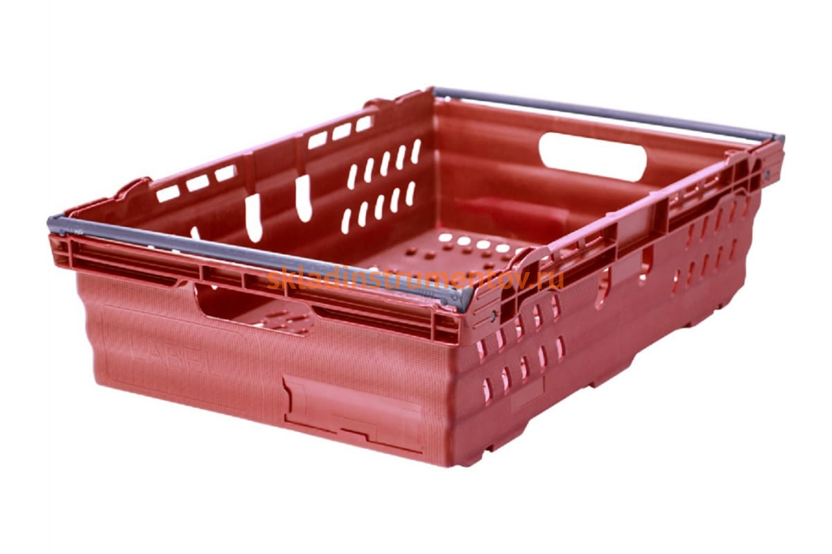 Ящик Тара.ру п/э 600х400х167 со складываемыми ручками, красный 19282 подходит для хранения овощей и фруктов, так как перфорация обеспечивает непрерывную циркуляцию воздуха.