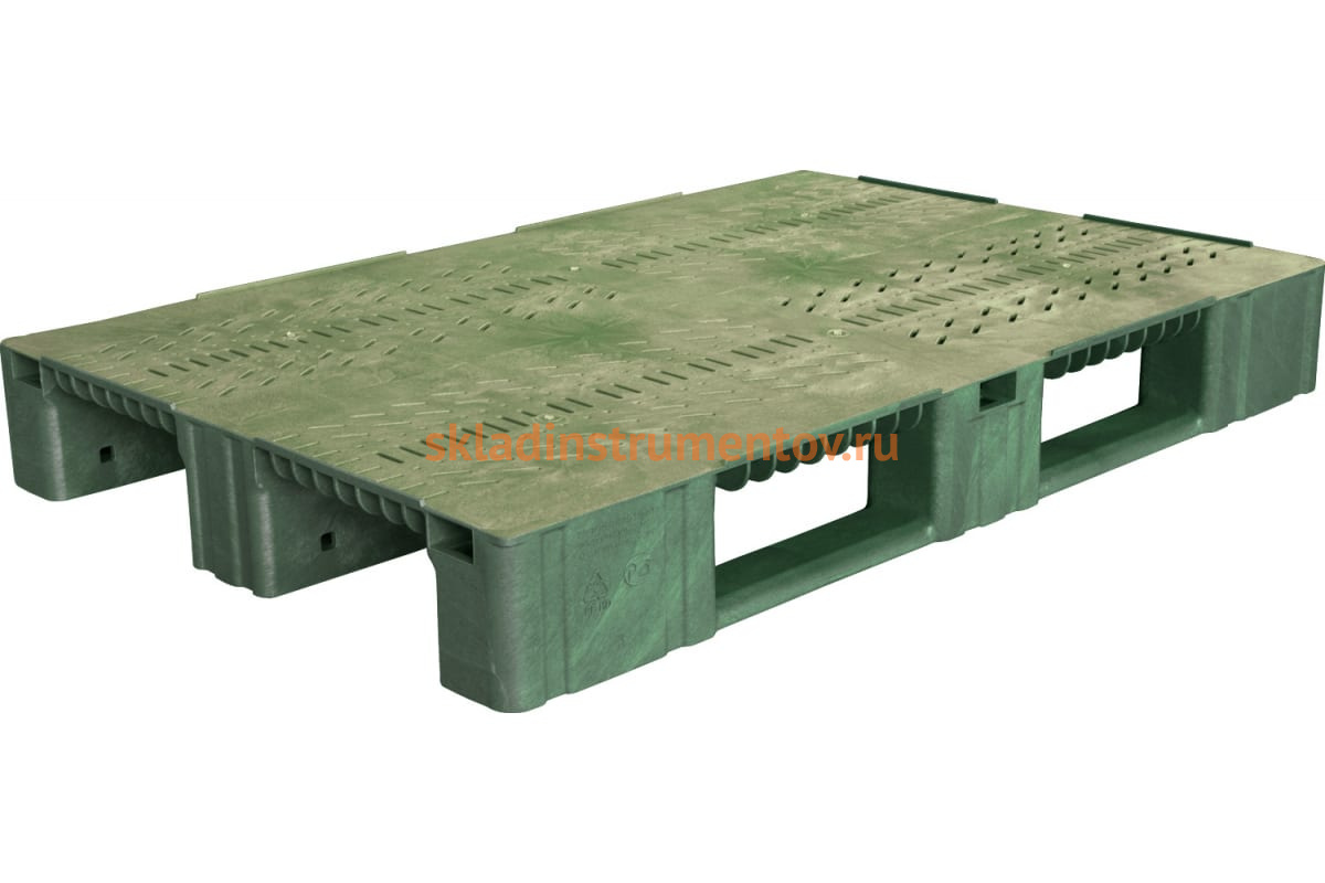 Перфорированный паллет на 3-х полозьях, зеленый, 1200х800х150 мм Тара.ру 09315 обеспечивает удобство размещения товара в продуктовых магазинах.Модель изготовлена из прочного пластика, может использоваться при низких температурах.Борта образуют ручки для удобства транспортировки, а также защищают товар от падения.