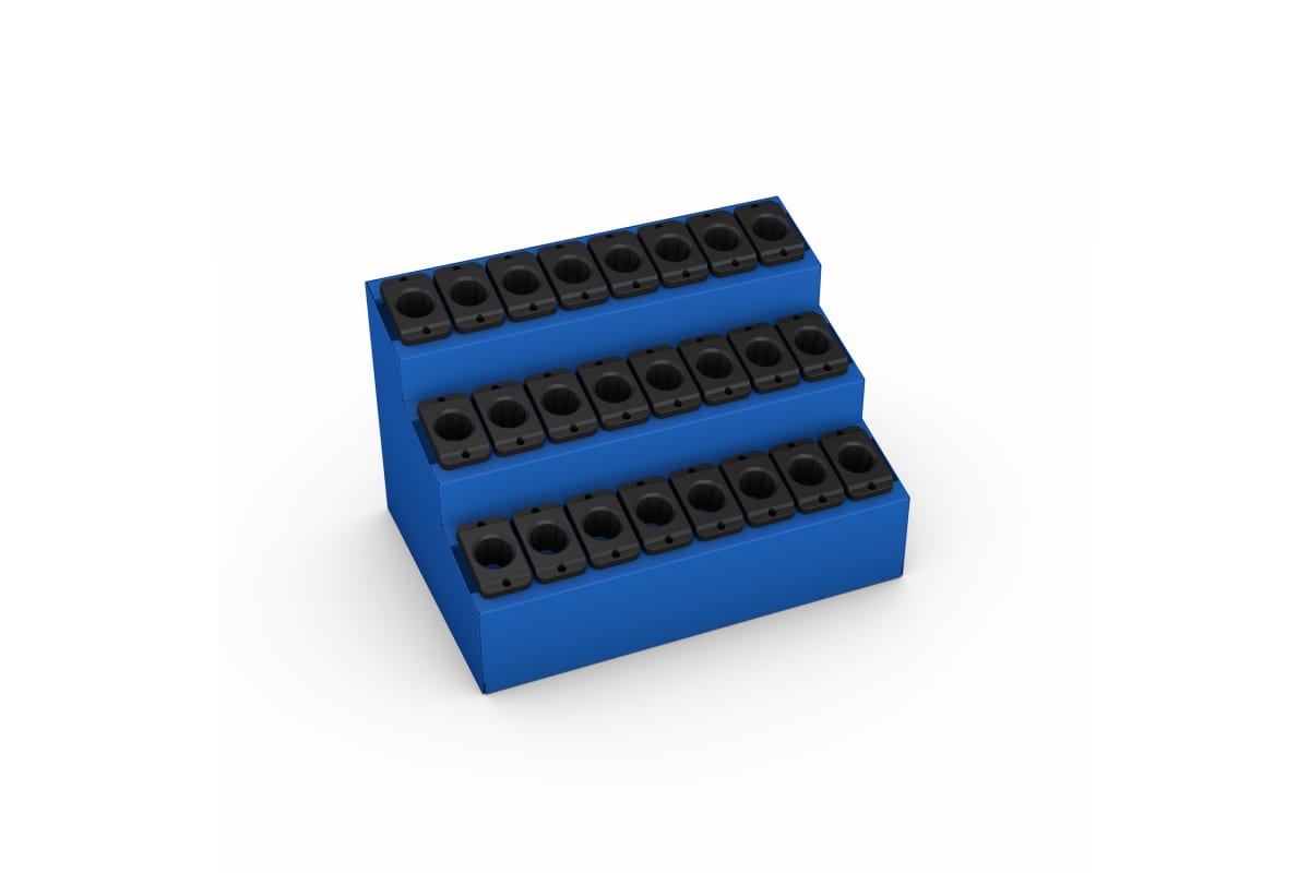 Стойка для хранения сменного инструмента FLAMES ВТ40 1641.00.00 представляет собой сварную конструкцию. Защитные конуса ВТ40 крепятся к стойке с помощью винтов М5.