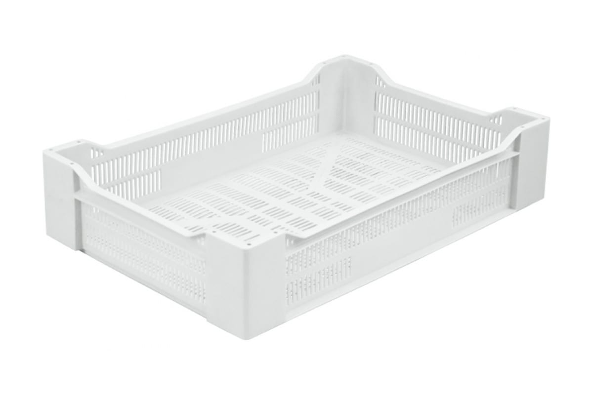 Ягодный ящик п/э 600х400х135 белый морозостойкий Тара.ру 02493 удобен в использовании - предельная высота не позволяет нагрузить его с избытком, что приведет к повреждению продукции.