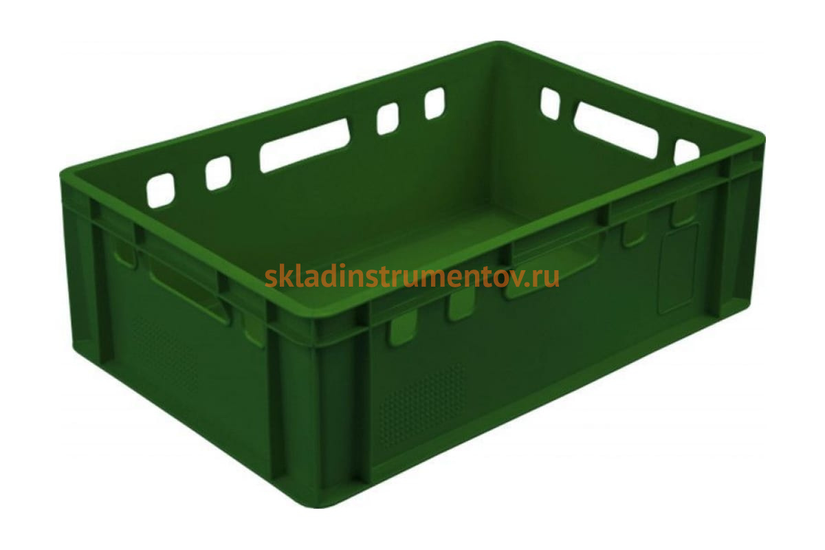 Ящик Тара.ру п/э мясной 600х400х200 сплошной Е2 зеленый 01600 подходит для хранения мяса, мясных продуктов: колбас, ветчин и прочих. Изделие выполнено из полиэтилена высокого давления. Дополнительные ребра жесткости позволяют максимально заполнить ящик без деформации.