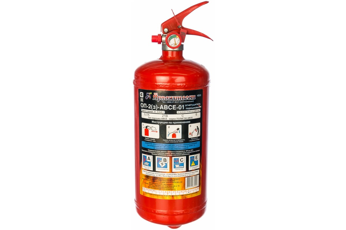 Порошковый огнетушитель с манометром ОП-2 з A;В;С;Е СПЕЦ имеет срок службы - 10 лет, требует обязательную перезарядку один раз в 5 лет и подлежит ежегодному освидетельствованию. Такой тип огнетушителя применяется при ликвидации пожаров следующих классов - А,В,С и Е, то есть тушение твёрдых горючих веществ, горючих жидкостей, горючих газов, электрооборудования под напряжением.