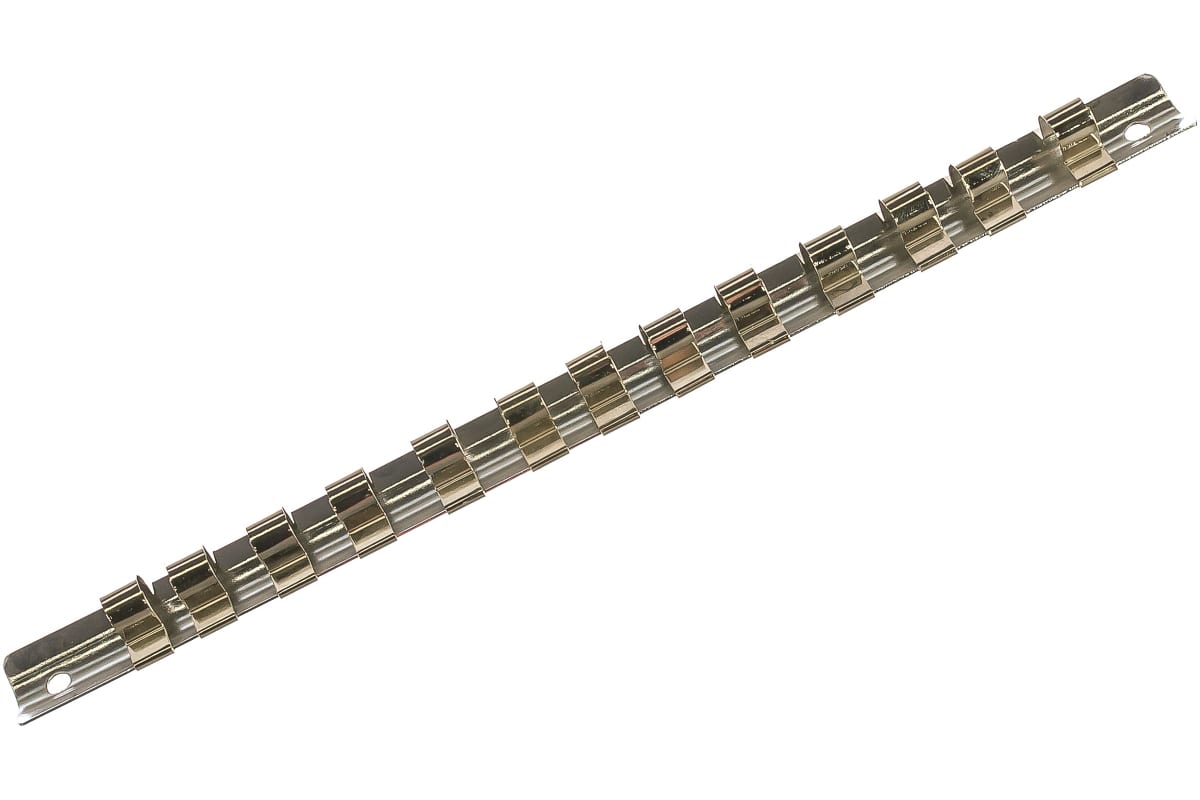Планка для головок металлическая на 13 посадочных мест Дело Техники 976113 используется для компактного и надежного хранения торцевых головок. Присоединительный квадрат 3/8". Конструкция планки обладает достаточной жесткостью, что позволяет без труда транспортировать оборудование. На концах изделия имеются отверстия для фиксации на поверхности. Малый вес планки допускает ее использование в инструментальных кейсах.