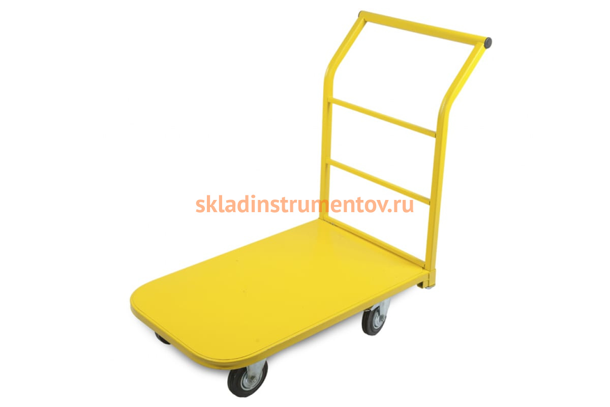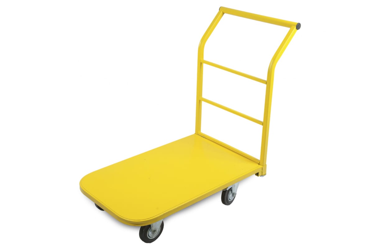 Можно подобрать колеса на усмотрение пользователя в зависимости от типа работ для плавного передвижение тележки по рабочей площадке. Рукоятка имеет удобную форму для надежного захвата во время управления.