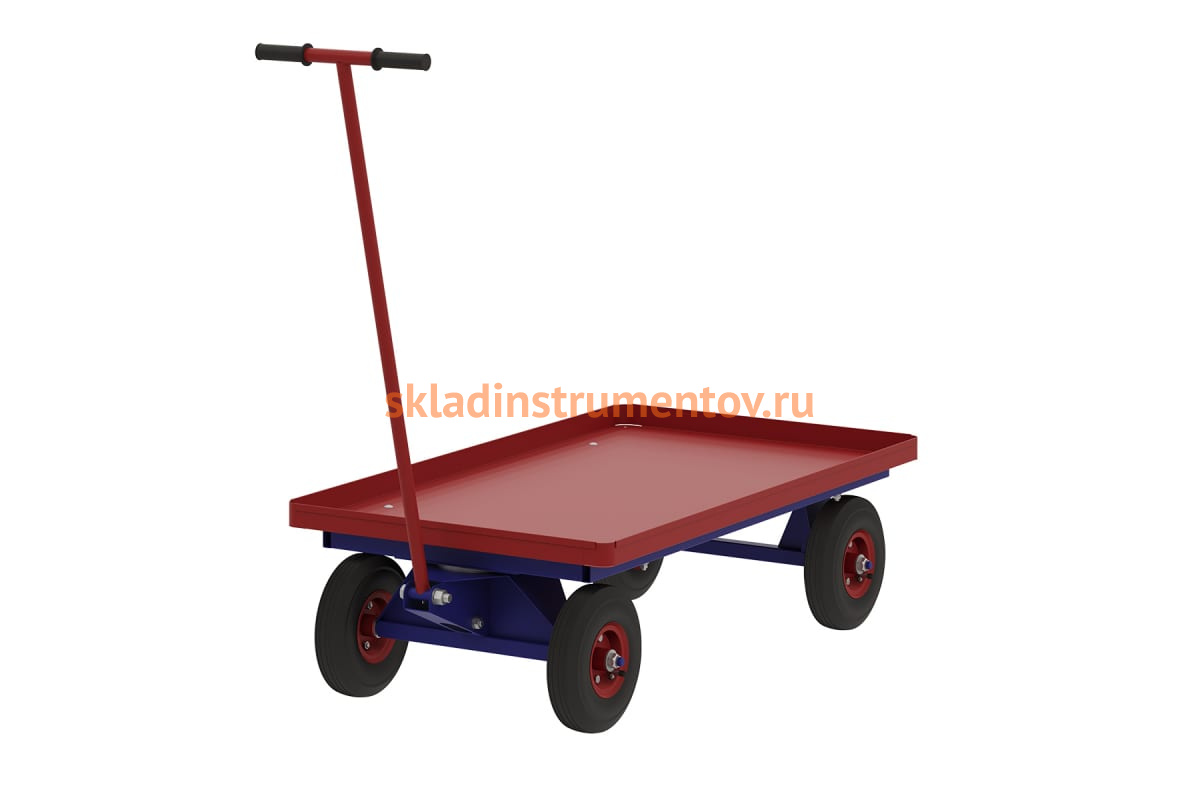 Для удобства перемещения негабаритного оборудования товаров возможна установка платформы борами вниз. Резиновые накладки на рукоятке обеспечивают надежный захват без эффекта проскальзывания рук. Прочная конструкция обладает четырьмя чугунными колесами диаметром 250 мм.