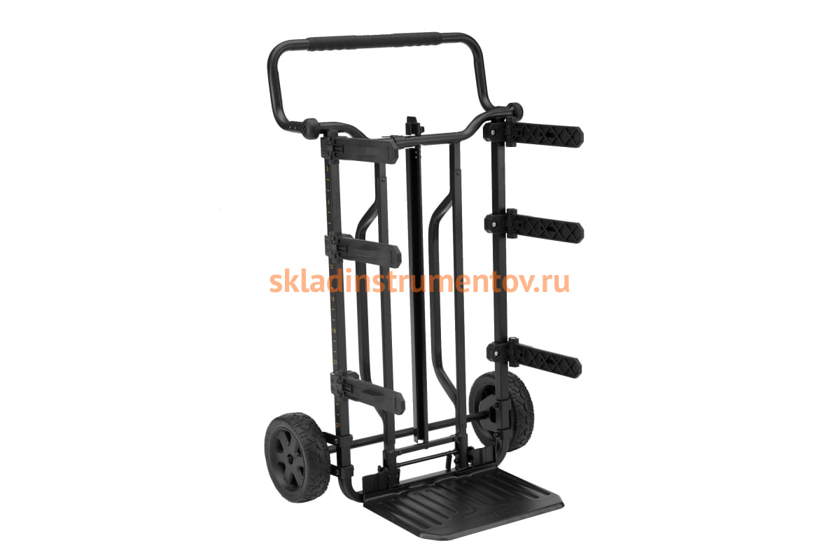 Тележка Stanley для системы DEWALT TOUGH SYSTEM 4 IN 1 1-70-324 предназначается для перевозки строительного инвентаря и материалов. Благодаря механизму блокировки ящики для инструмента надежно закреплены, а ключки выдерживают нагрузку до 60 кг и легко регулируются по высоте. Широкая ручка со специальным покрытием в месте захвата облегчает управление платформой. Вседорожные прорезиненные колеса обеспечивают плавное передвижение тележки по рабочей площадке. Нижняя платформа имеет рифленую поверхность, которая позволяет надежно зафиксировать груз весом до 150 кг.
