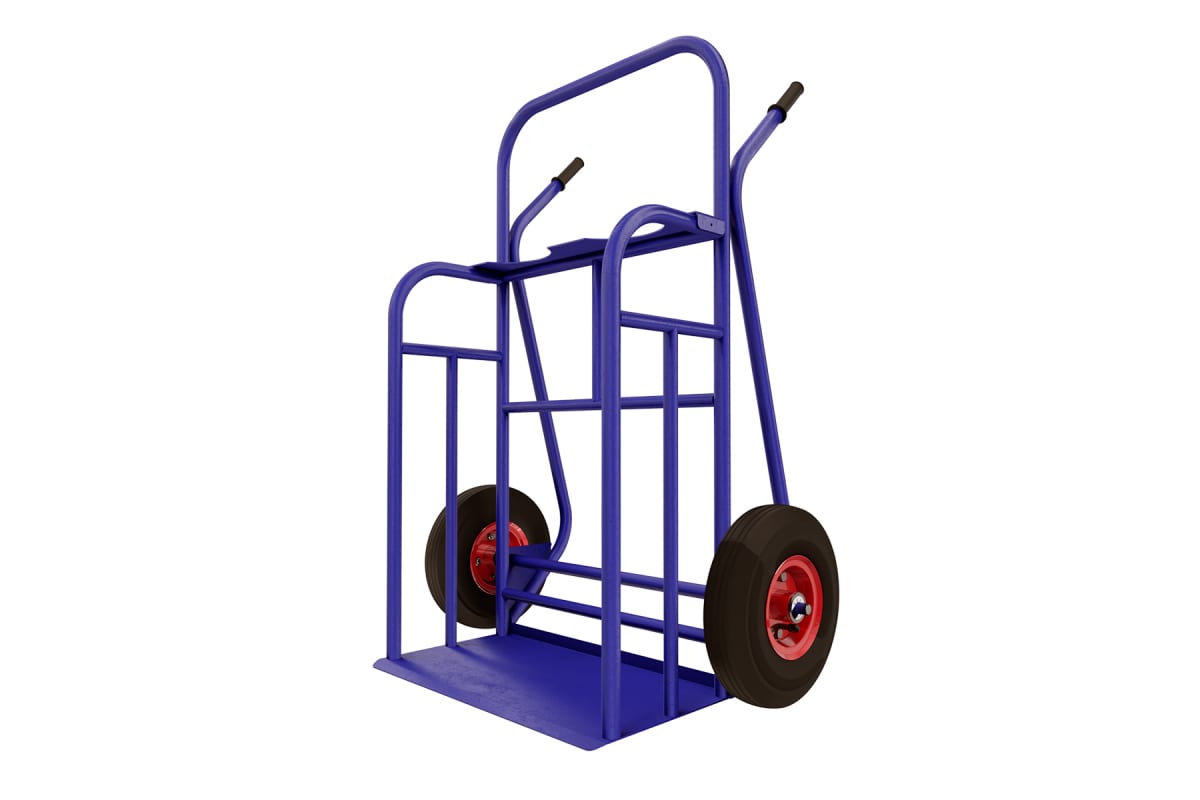 Грузоподъёмность данной тележки 350 кг. Полимерное порошковое покрытие устойчиво к влиянию коррозии, что позволяет использовать приспособление на открытом воздухе даже при неблагоприятных погодных условиях.