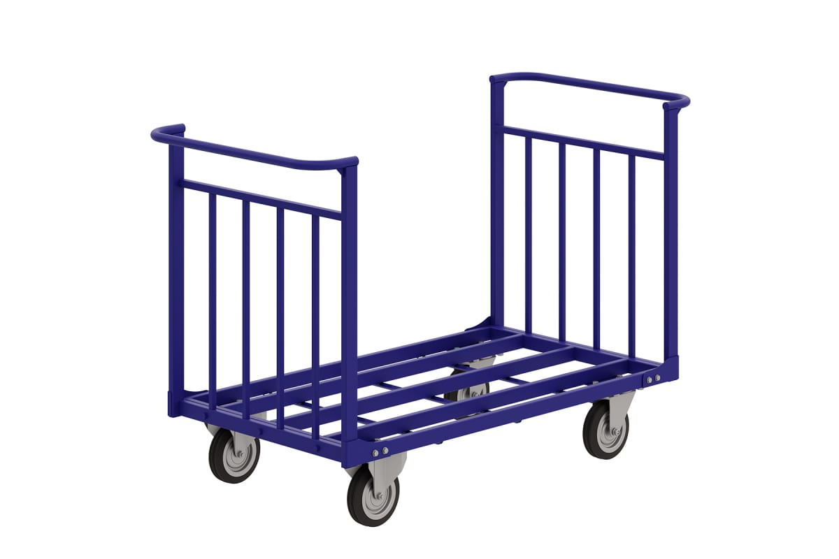 Модель выполнена из прочного металлического профиля. Две ручки и поворотные колеса способствуют маневренности и удобству управления. Высокая рукоятка исключает травмирование человека. Прочная конструкция обладает четырьмя литыми усиленными колесами диаметром 200 мм.