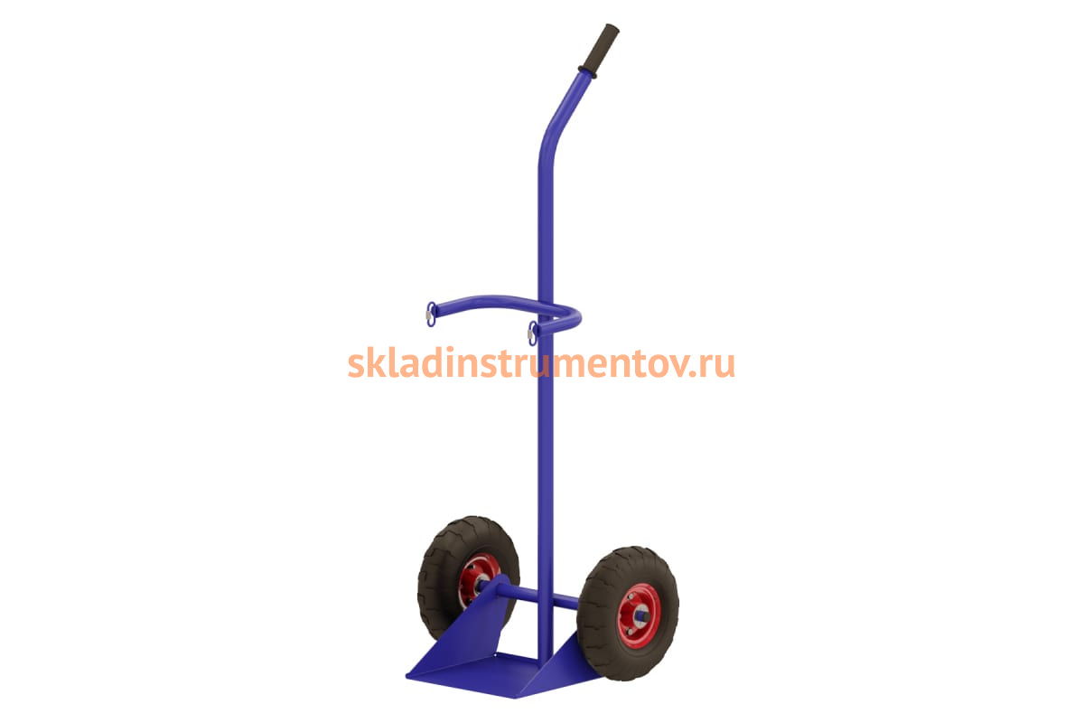 Тележка для перевозки одного газового баллона с фиксацией - ремень RUSKLAD ГБР 1 250 пневмо имеет облегченную конструкцию и служит для перевозки одного баллона (кислородного или углекислотного). Каркас выполнен из металла.