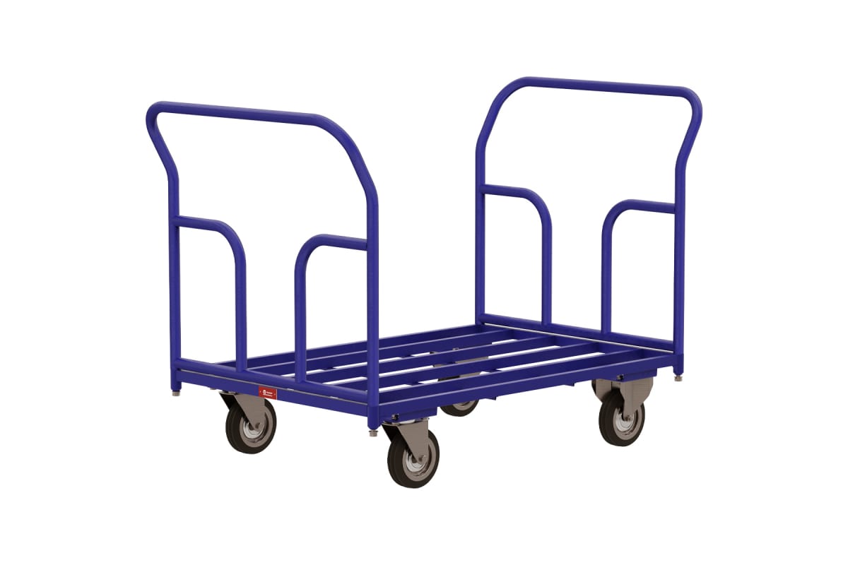 Благодаря жесткой конструкции изделие способно выдержать нагрузку до 300 кг. Две ручки и поворотные колеса способствуют маневренности и удобству управления. Высокая рукоятка исключает травмирование человека. Прочная конструкция обладает четырьмя литыми колесами диаметром 125 мм.