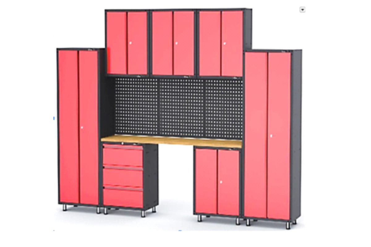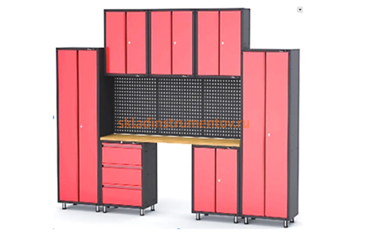 Комплект металлической гаражной мебели 11 предметов ROCKFORCE RF-01463 подойдет для компактного хранения:
