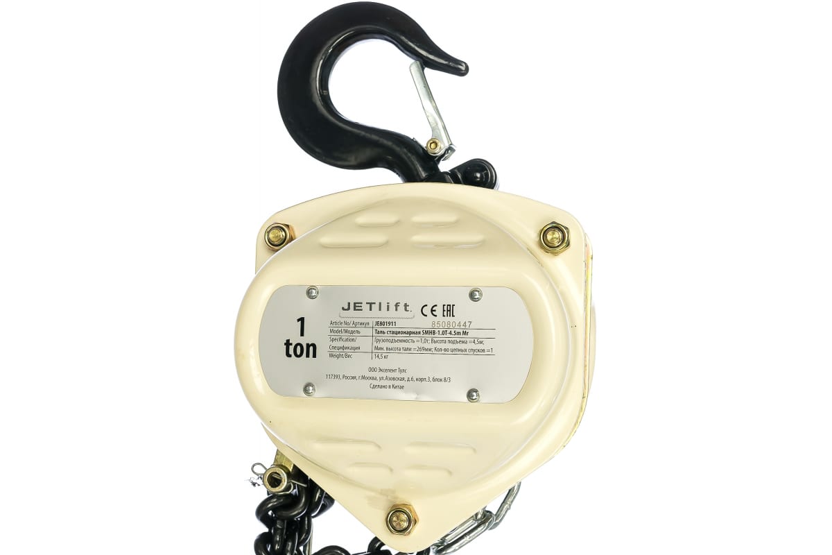 Стационарная таль JET SMHA-1.0T-4.5m 801911 представляет собой специальный механизм для возможности подъема и опускания грузов без рывков весом до 1 тонны на высоту до 4,5 метров. Крюки тали обладают функцией поворота вокруг оси на 360°, что защищает цепи от перекручивания и спутывания. Таль имеет прочную конструкцию и длительный срок эксплуатации.