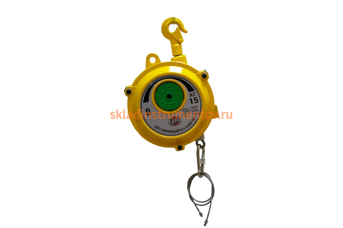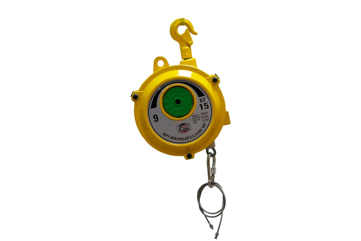 Пружинный балансир EURO-LIFT нагрузка 9-15 кг; длин троса 1,5м; вес 4кг 00018543 используется в ремонтных и производственных мастерских для подвешивания различного инструмента, осветительных приборов, а также других грузов. Предусмотрено изменение высоты подвеса в ходе работы без лишних физических усилий.