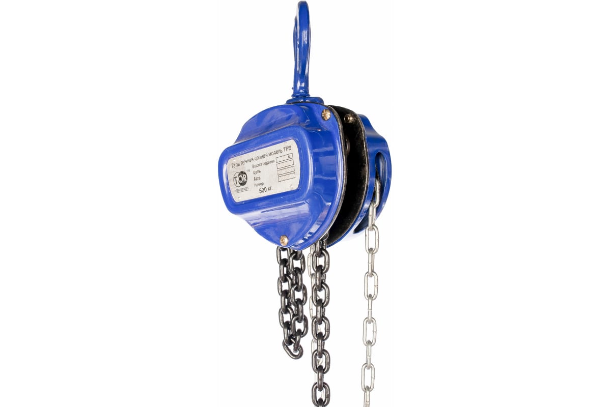 Ручная цепная таль TOR HS-C 1010531 распространена в строительстве, она приводится в действие при помощи физической силы пользователя. Модель оборудована стопорным механизмом для фиксирования груза на определенной высоте, что предотвращает его бесконтрольное падение. Также возможность закрепить объект обеспечивает удобную работу и расширяет сферу применения приспособления.
