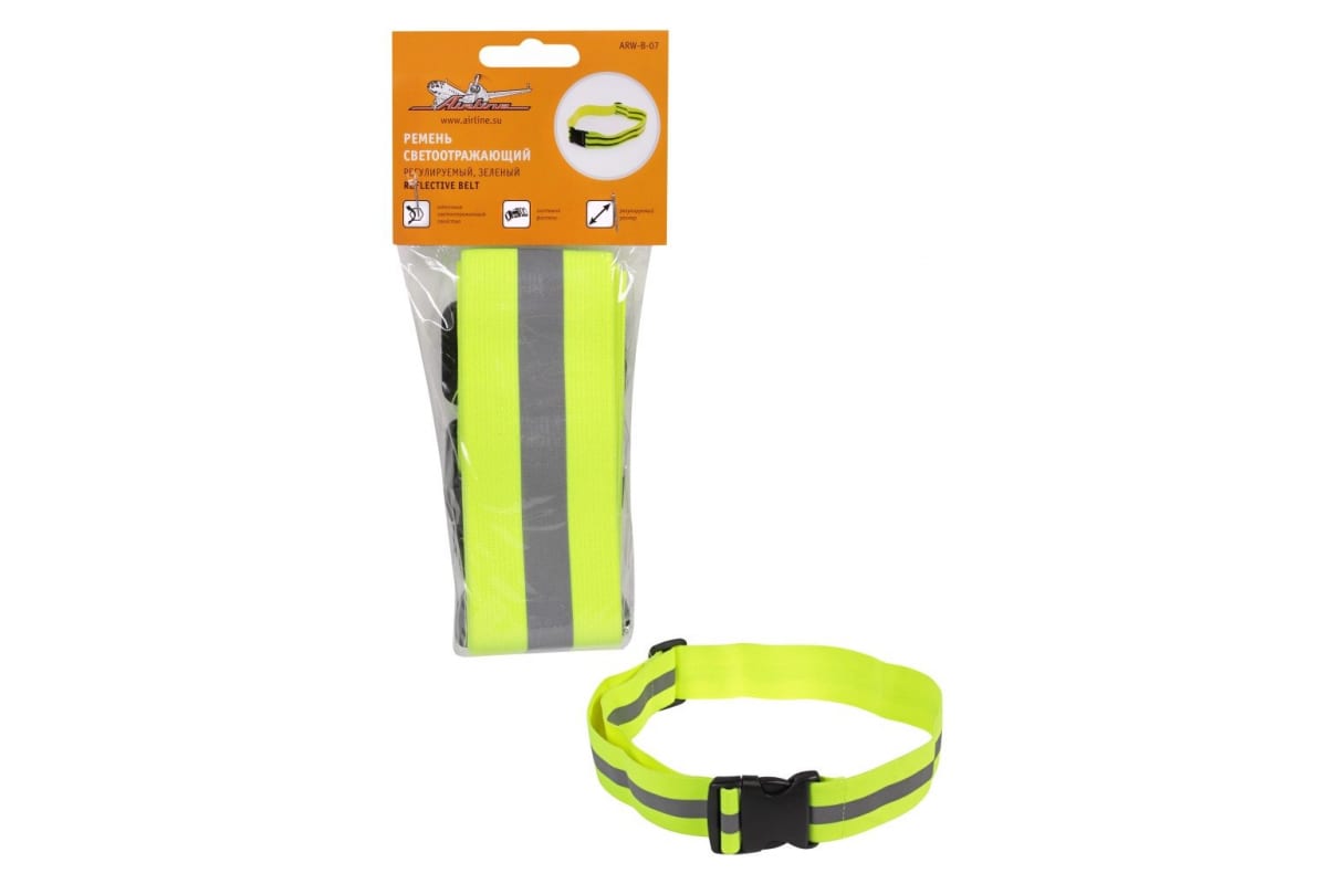 Светоотражающий ремень Airline, регулируемый, зеленый ARW-B-07 обеспечивает максимальную видимость в темное время суток, что гарантирует безопасность.
