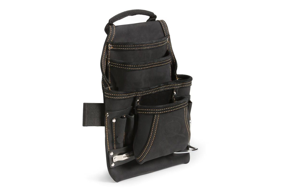Кожаная поясная сумка без ремня КВТ СК-10 78428 изготовлена из буйволиной кожи, дубленой в масле, толщиной 2 мм, самой прочной кожи, устойчивой к износу. Имеет 10 карманов для инструментов. Отделения сумки надежно крепятся к ее основанию металлическими заклепками. Все прошито высокопрочной девятислойной крученой нейлоновой нитью.